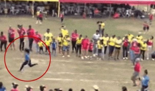 셀리 앤 프레이저-프라이스가 학교 운동회 학부모 100m 달리기 대회에서 압도적인 기량을 뽐내고 있다. 셸리 앤 프레이저-프라이스 인스타그램 캡처