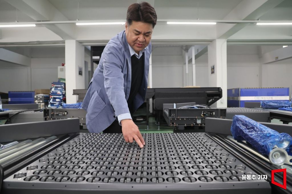 경기 부천시 티엑스알로보틱스 물류 자동화 사업본부. 작업복을 입은 직원들은 곧 고객사에 인수될 휠 소터(Wheel Sorter)를 앞에 두고 마지막 성능 테스트를 진행하는 데 여념이 없다. 휠 소터는 컨베이어 벨트 위의 작은 바퀴들이 상하좌우로 움직이며 물류 창고 안의 택배 상자를 분류해주는 자동화 시스템이다. 티엑스알로보틱스가 생산하는 휠 소터는 롤러 중심 간의 거리(Pitch)가 세계 최소 수준이다. 다른 휠 소터보다 오차가 적고 택배를 빠르게 분류할 수 있다. 지난 17일 찾아간 티엑스알로보틱스에선 이처럼 특화된 기술력을 바탕으로 세계적인 로봇·물류 자동화 기업으로 도약하겠다는 꿈이 영글고 있었다.