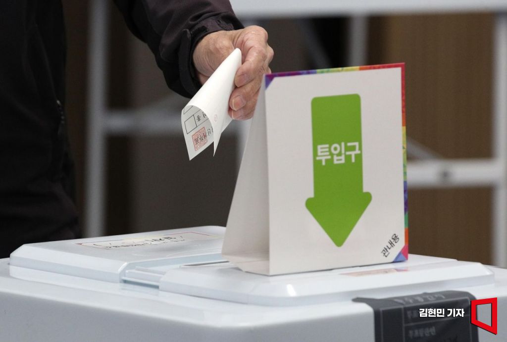 투표함에 표를 넣는 유권자의 모습. 김현민 기자