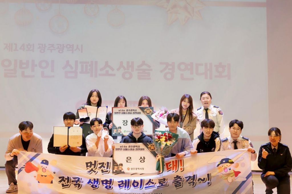 조선대학교 소방재난관리학과와 경찰행정학과 학생들이 '제14회 광주시 일반인 심폐소생술 경연대회'에서 각각 은상과 장려상을 수상했다. 조선대학교 제공
