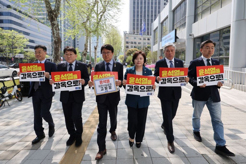 혁신당 의원단은 이날 국가수사본부 앞에서 기자회견을 통해 "혁신당은 윤석열을 공직선거법상 허위사실공표죄로 국가수사본부에 고발한다"고 밝혔다.