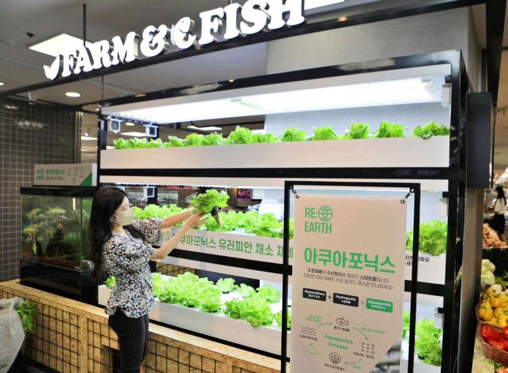 롯데마트 제타플렉스 잠실점의 아쿠아포닉스 스마트팜 매장. 롯데마트 제공