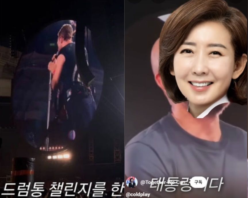 세계적인 밴드 콜드플레이가 최근 내한 공연에서 한국의 정치 상황을 언급해 화제가 된 가운데, 나경원 국민의힘 대선 경선 후보가 해당 발언을 임의로 편집해 자신의 홍보 영상을 올려 논란이 되고 있다. 나 의원 측은 '단순한 홍보물'이라는 입장이지만, 네티즌들은 '아전인수식 날조'라고 비판했다.