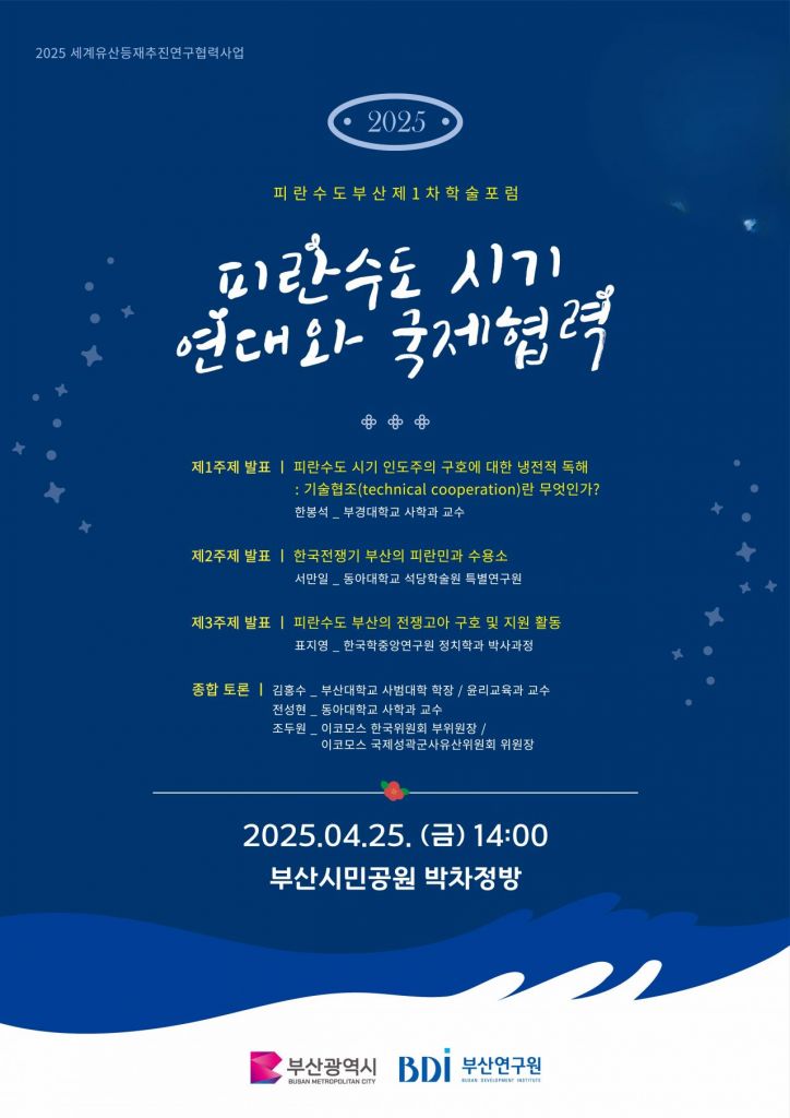 2025년 세계유산 등재추진 연구협력사업 피란수도 부산 제1차 학술포럼 포스터.