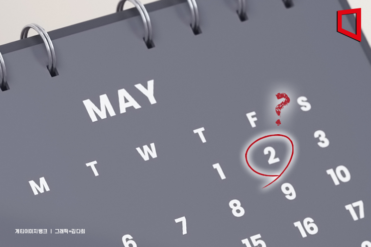 5월 초 황금연휴가 다가오면서 2일 임시공휴일 지정 여부에 누리꾼의 관심이 높아지고 있다. 최근 직장인 익명 온라인 커뮤니티 '블라인드'에는 '5월 2일이 임시공휴일로 지정될 가능성이 있느냐'는 글이 잇따른다. 올해는 어린이날과 부처님오신날이 5월 5일로 겹치면서 5월 3일 토요일부터 대체공휴일인 6일까지 이어지는 황금연휴가 예정돼 있다.