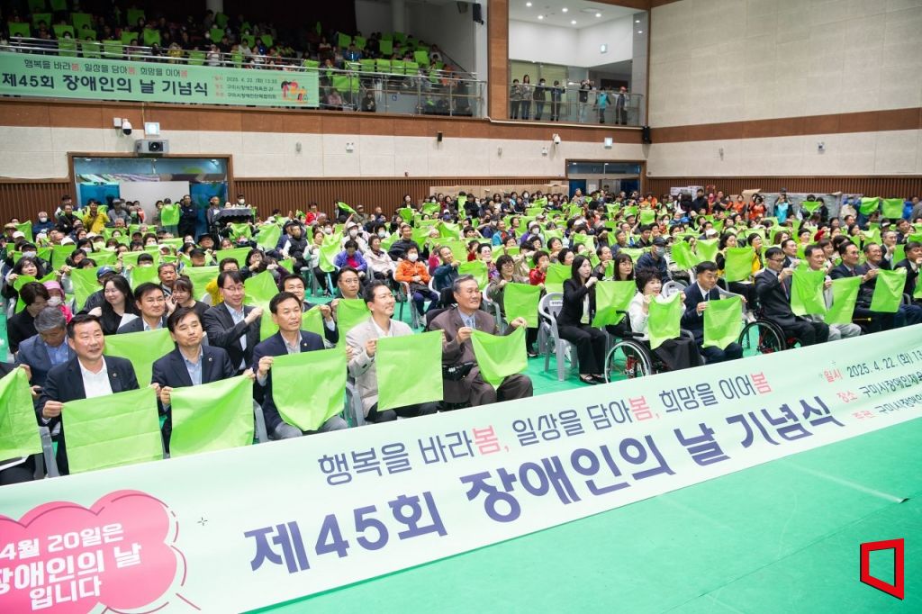 경북 구미시는 22일 구미시장애인체육관에서 '제45회 장애인의 날 기념식'을 개최하고 장애인의 자립과 권익 증진, 모두가 함께하는 사회 실현의 의지를 다졌다.