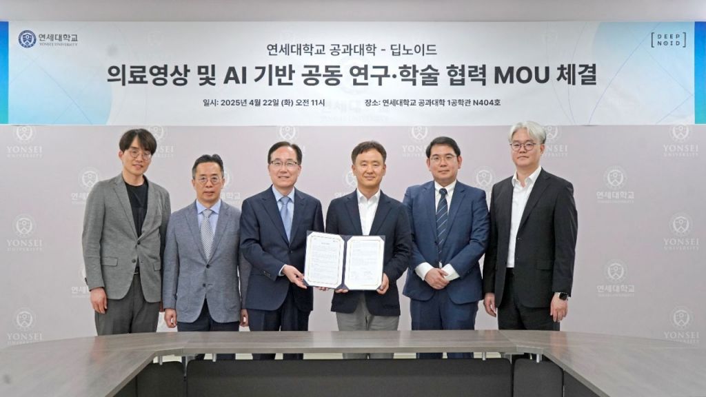 국내 1세대 의료 AI 전문업체 딥노이드는 연세대 공과대학과 의료 영상 및 인공지능(AI)을 활용한 공동 연구 및 학술협력 강화를 위한 업무협약(MOU)을 체결했다고 23일 밝혔다.