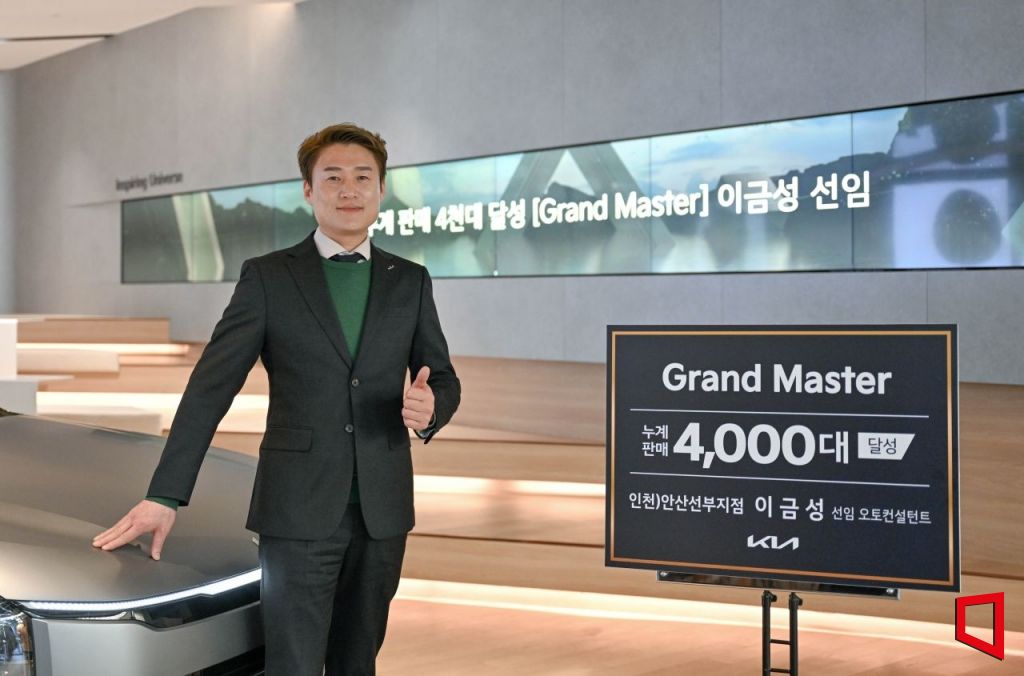 기아는 안산선부지점 이금성 선임 오토컨설턴트가 누계 판매 대수 4000대를 달성해 '그랜드 마스터'에 올랐다고 23일 밝혔다. 기아