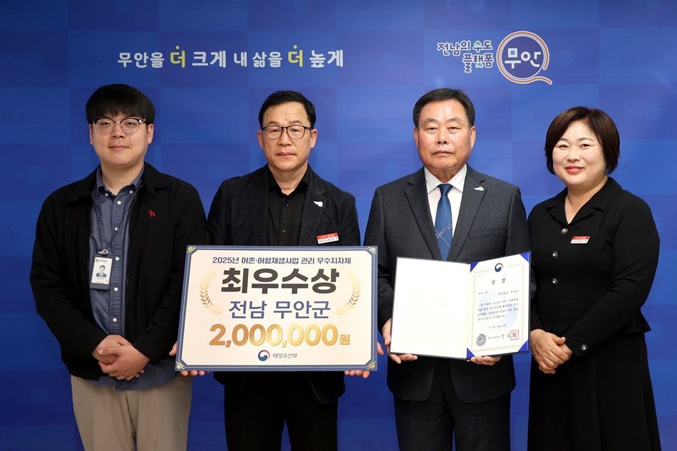 전남 무안군(군수 김산)은 2025년 해양수산부 주관 어촌·어항 재생사업 평가에서 최우수 기관에 선정되는 쾌거를 거뒀다고 23일 밝혔다.