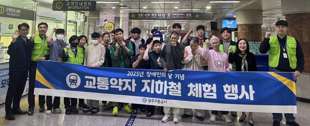 광주교통공사(사장 조익문)와 광주시장애인복지시설 파인빌(원장 김서정)은 최근 제45회 장애인의 날을 맞아 서구 상무역에서 교통 약자를 대상으로 지하철 체험 행사를 펼쳤다고 23일 밝혔다.