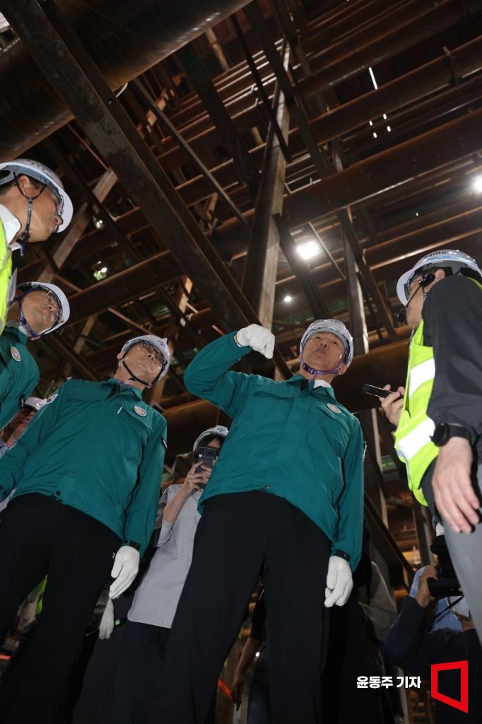 오세훈 서울시장이 23일 서울 강남구 영동대로 지하공간 복합개발 건설공사 현장을 방문, 3공구 지하 암반 굴착 현장을 시찰하고 있다. 2025.04.23 윤동주 기자