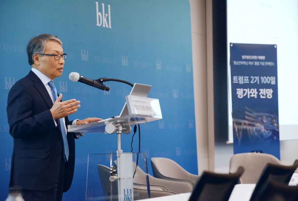 법무법인 태평양이 22일 트럼프 미국 대통령의 2기 행정부 출범 100일을 앞두고 한국 기업들의 전략을 모색하는 세미나를 열었다. 법무부 분쟁대응과장 출신의 한창완 변호사(사법연수원 35기)가 사회를 보고 재계·학계 등 80여 개 기관의 관계자 100여 명이 참석했다.