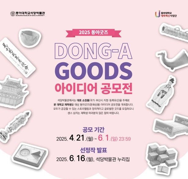 동아대학교 석당박물관(관장 김기수)은 재학생을 대상으로 오는 6월 1일까지 '동아굿즈(문화상품) 아이디어 공모전'을 진행한다.