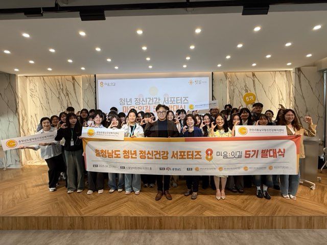 충남도는 23일 오후 천안 신불당아트센터 이벤트홀에서 도내 6개 대학교에서 선발한 대학생 72명으로 구성된 '마음;잇길 제5기 청년 정신건강 서포터즈' 발대식을 가졌다고 밝혔다.