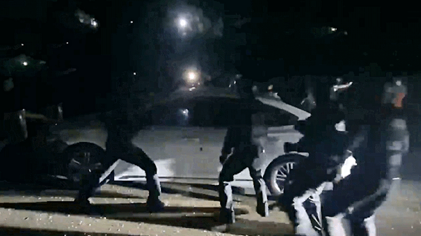 A씨가 앉아 있던 차 운전석 쪽으로 간 4명의 대원은 티타늄 재질로 된 망치 모양의 창문 파쇄기로 차창을 두드려 깼고 동시에 조수석 쪽으로 간 2명의 대원은 테이저건을 발사해 A씨에게 명중시켰다.