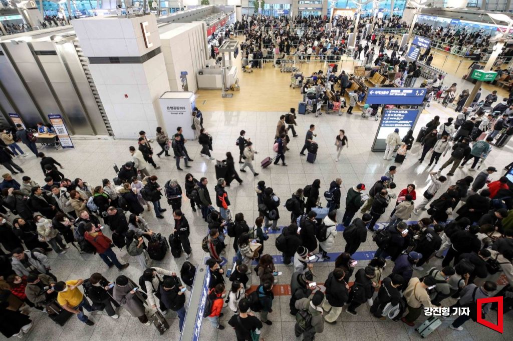인천국제공항 제1여객터미널을 찾은 여행객들의 모습.