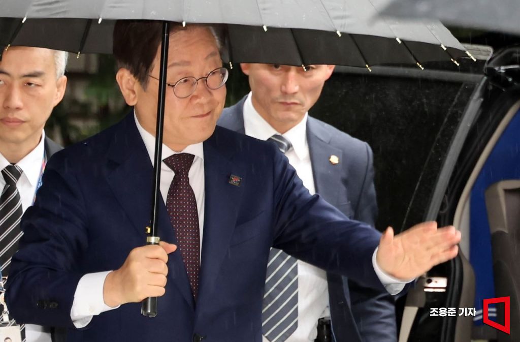 이재명 전 더불어민주당 대표가 22일 서울 서초구 서울중앙지법에서 열린 '대장동 배임·성남FC 뇌물 혐의' 1심 속행 공판에 출석하고 있다. 2025.4.22 조용준 기자