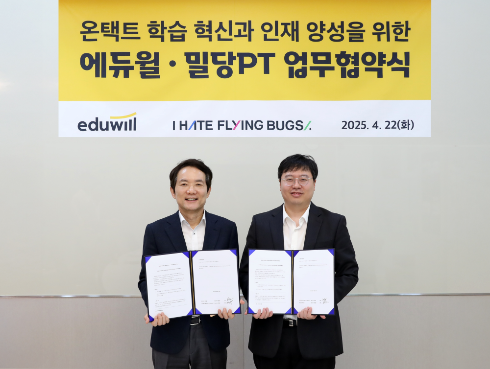 에듀윌은 지난 22일 서울 구로구 본사에서 아이헤이트플라잉버그스(IHFB)와 온택트 학습 혁신 및 인재 양성을 위한 업무협약(MOU)을 체결했다고 24일 밝혔다.