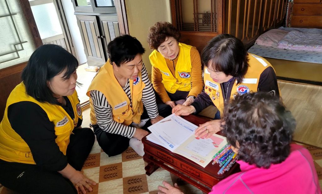 대한적십자사 부산지사가 노인가구 500세대와 적십자 봉사원이 함께하는 '적십자와 함께 그리는 기억의 색' 치매예방 결연활동을 실시하고 있다.