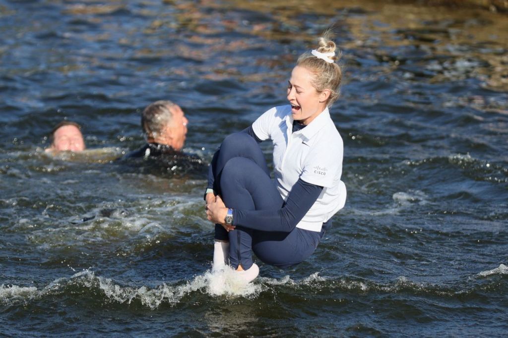 넬리 코다가 작년 셰브론 챔피언십에서 우승한 뒤 호수로 뛰어드는 세리머니를 펼치고 있다. AFP연합뉴스