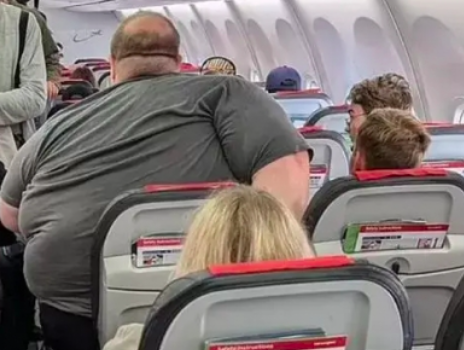 비만 승객이 좌석에 앉으려는 사진이 온라인상에 확산하면서 비행기 가격 논쟁이 불거졌다. 페이스북 'elliottdotorg'