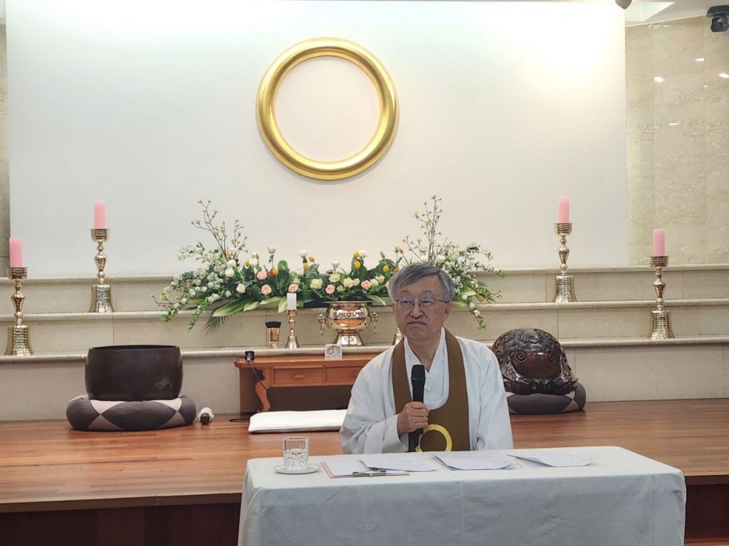 나상호 원불교 교정원장이 24일 서울 용산 서울교당에서 원불교 창립일인 대각개교절 110주년을 앞두고 개최한 기자간담회에서 발언하고 있다.