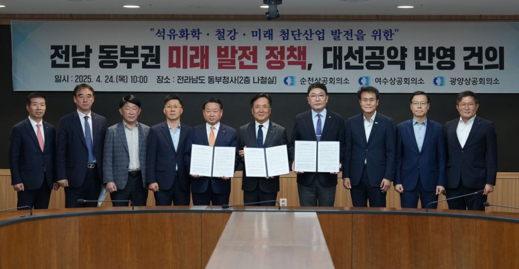 전남 동부권 3개 상의는 수십 년간 국가와 전남 동부권 경제를 견인해 온 석유화학과 철강산업이 현재 심각한 구조적 위기에 처해 있는 만큼 고부가·친환경 산업으로의 대전환과 이차전지·기능성소재 등 첨단산업기업의 입지 수요가 높은 광양·순천 일원에 국가적 미래산업 육성을 위해 소재산업을 집적화할 수 있는 국가산단 조성 등이 시급하다고 강조했다.