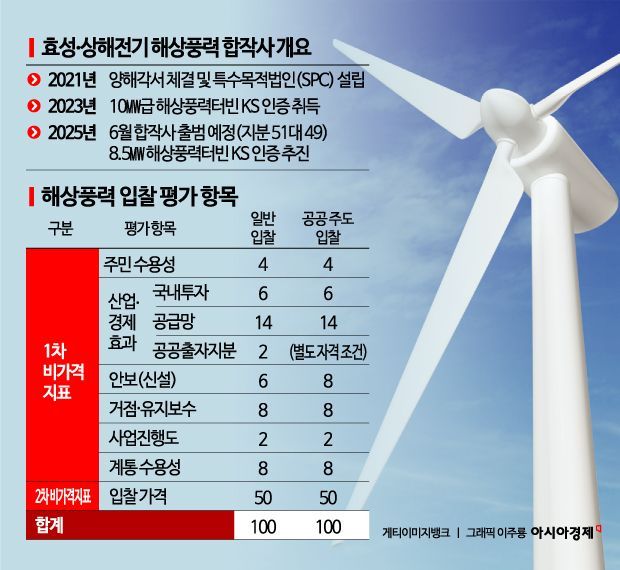 효성중공업은 2021년 상해전기와 MOU 체결 후 특수목적법인(SPC)을 설립하고 합작공장 건립을 준비해 왔다. 2023년 10㎿급 해상풍력 터빈에 대한 KS 인증을 받았으며 추가로 8.5㎿급 터빈의 KS 인증도 준비하고 있다. 회사 관계자는 "한국의 풍속에는 10㎿급보다는 8.5㎿급 풍력 터빈이 적합하다고 보고 있다"고 설명했다. 효성중공업은 한국 시장 여건에 맞춰 향후 한국 공장에서 16㎿급 터빈도 생산할 계획이다.