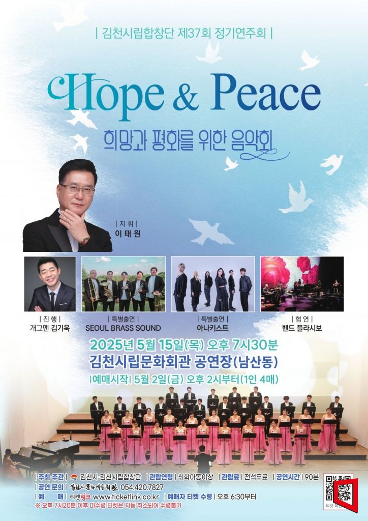 김천시는 오는 5월 15일 오후 7시 30분, 시립문화회관에서 시립합창단 제37회 정기연주회 '세대공감, 희망을 노래하다' 를 개최한다고 25일 밝혔다.