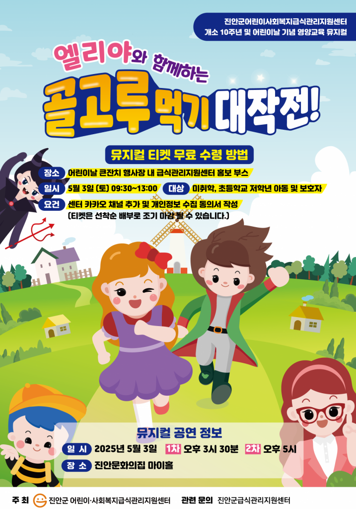 엘리야와 함께하는 골고루먹기 대작전 뮤지컬 포스터. 진안군 제송