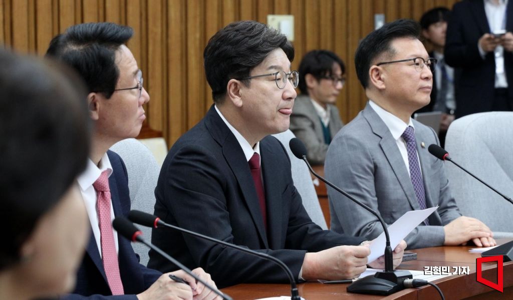 권성동 국민의힘 원내대표가 25일 국회에서 열린 원내대책회의에서 발언하고 있다.