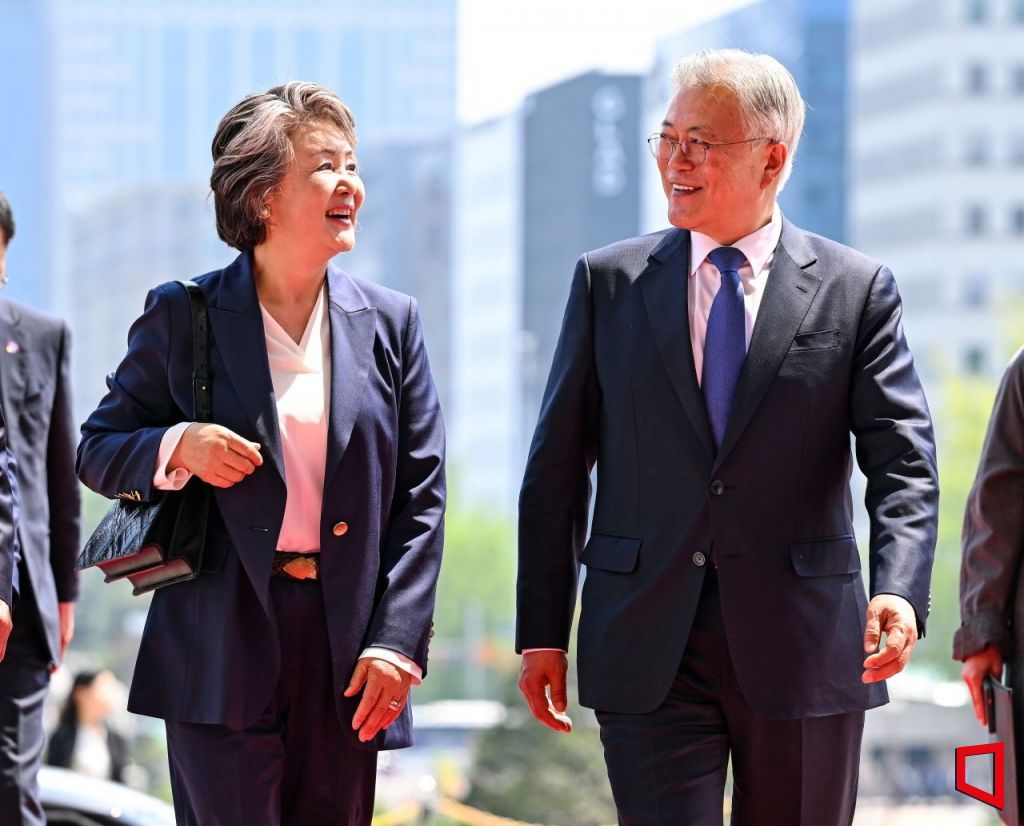 문재인 전 대통령과 김정숙 여사가 25일 국회에서 우원식 국회의장과 면담을 위해 들어서고 있다. 이날 문 전 대통령은 판문점선언 7주년 기념식 참석을 위해 퇴임 후 처음으로 국회를 방문했다. 2025.4.25 국회사진기자단