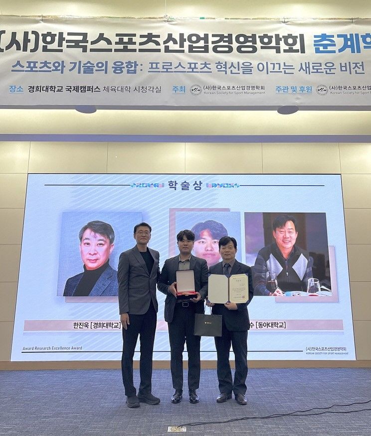 학술상 시상식은 지난 19일 경희대 국제캠퍼스에서 열린 '2025 한국스포츠산업경영학회 춘계학술대회'에서 진행됐다. 이날 학술대회는 '스포츠와 기술의 융합: 프로스포츠 혁신을 이끄는 새로운 비전' 주제로 열렸다.