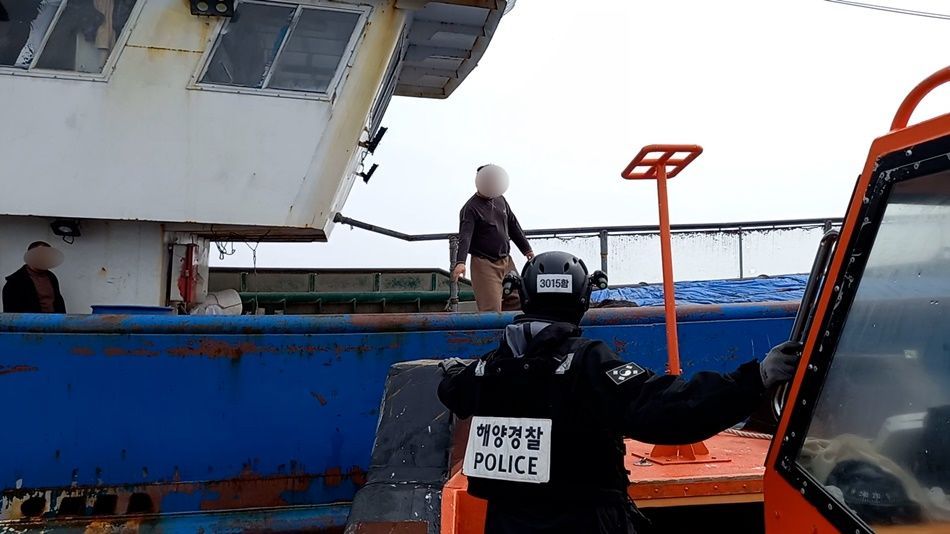 목포해경이 중국어선 검문 검색을 위해 등선하고 있다. 목포해양경찰서 제공