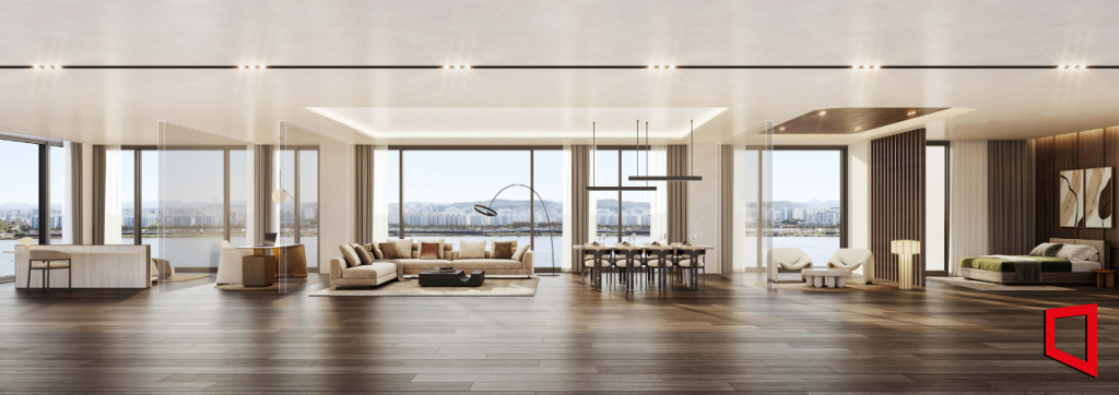 내부는 조망형 욕실과 2면 개방형 안방·거실, 파노라마 창호, 다양한 용도로 활용 가능한 비욘드 라운지 등을 설계한 조망 특화 프리미엄 설계를 통해 한강을 일상 속으로 끌어들이는 주거 경험을 제공한다.