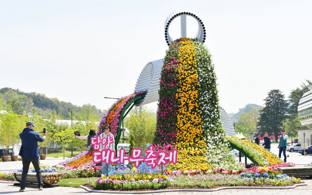 5월 2~6일 황금연휴를 맞아 '제24회 담양대나무축제'가 죽녹원 일원에서 '담양 초록에 물들다-대나무의 향연 with Daenamoo'를 주제로 열린다. 담양군은 다채로운 콘텐츠를 갖추고, 관광객의 발길을 사로잡을 준비를 마쳤다. 사진은 꽃탑 광장에서 관광객들이 인증샷을 하는 모습. 담양군 제공