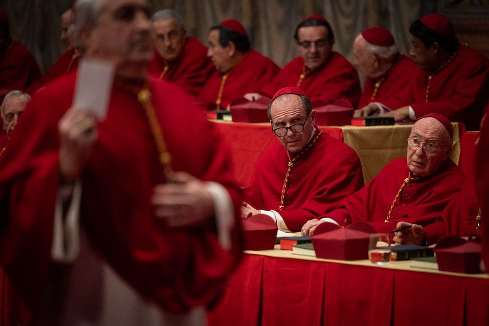 콘클라베에 참석한 추기경들이 차기 교황에 대해 논의하고 있다.