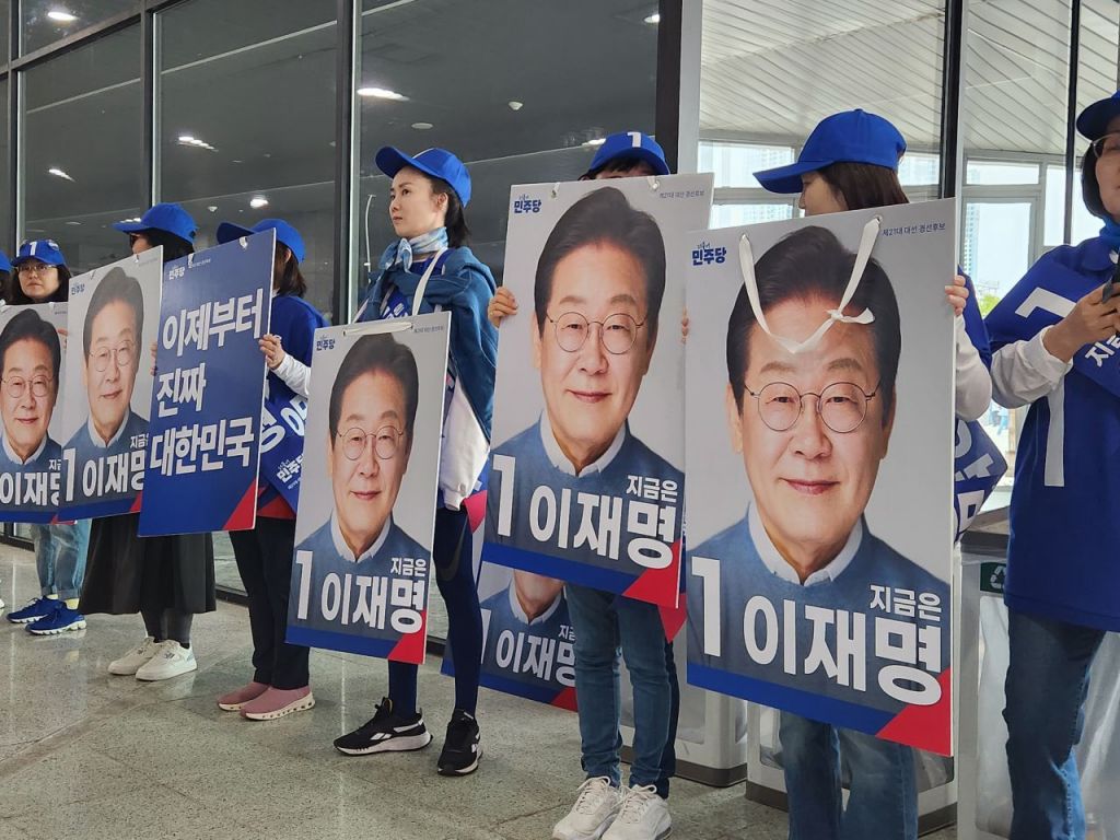 28일 오후 1시께 경기 고양시 일산 킨텍스 앞에서 만난 최효숙씨는 "이 전 대표가 경기지사였을 당시 청소년들을 위한 대책이 있었고 혜택을 받았다"며 "20~30대 중 지지하는 사람이 많다"고 말했다. 이진련씨는 "이 전 대표가 압도적으로 후보가 될 것"이라며 "내란 세력을 더 이상 두고 볼 수 없다"고 강조했다.