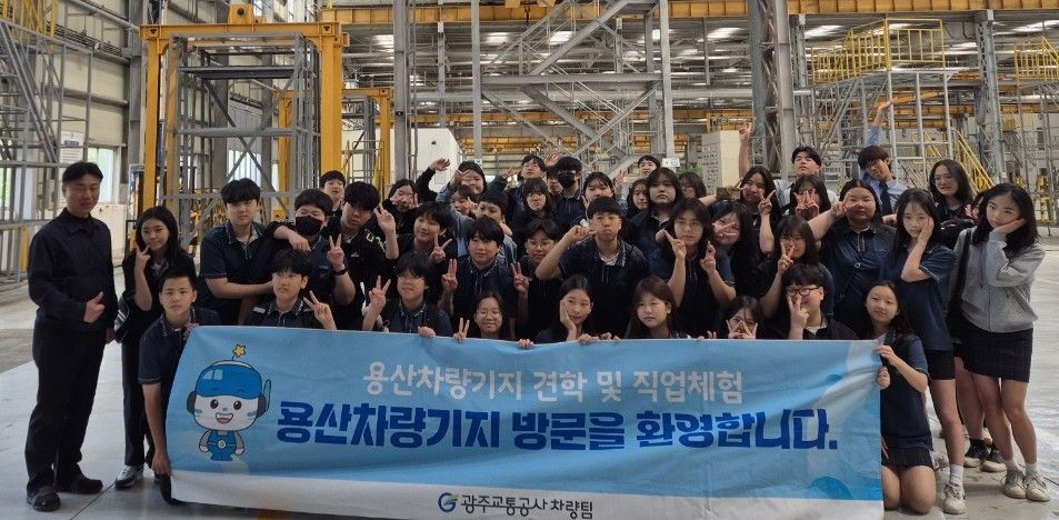 광주교통공사는 최근 경신중학교 학생 200명을 동구 용산 차량기지로 초청, 진로 체험행사를 펼쳤다. 광주교통공사 제공