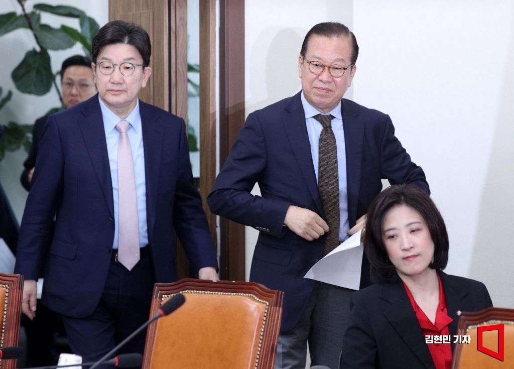 권영세 국민의힘 비상대책위원장이 28일 국회에서 열린 비상대책위원회의에 참석하고 있다.