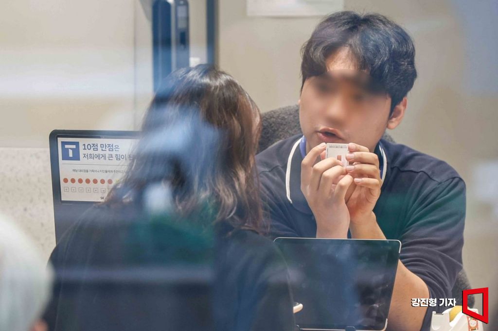 28일 서울 중구 한 SK텔레콤 공식 인증 대리점을 찾은 고객이 유심을 교체하고 있다. SK텔레콤은 오늘부터 가입자들에게 유심 무료 교체서비스를 제공할 예정이다.