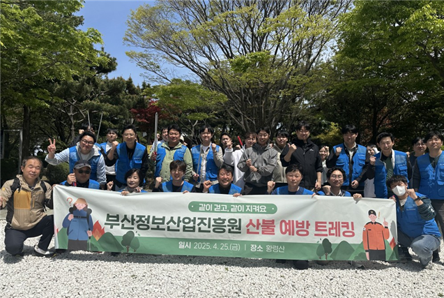 부산정보산업진흥원(원장 김태열)은 지난 25일 ESG 경영 실천과 지역사회 공헌 활동으로 '산불 예방 트레킹' 플로깅 캠페인을 황령산 일대에서 진행했다.