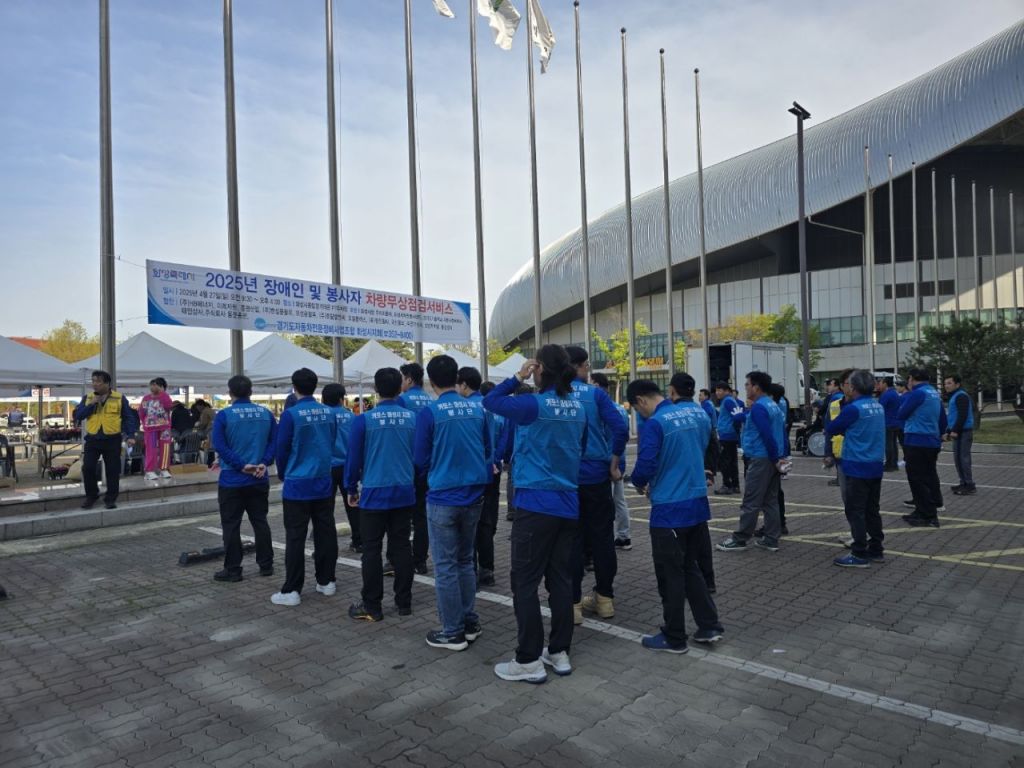 경기도일자리재단 산하 경기도기술학교가 27일 화성종합경기타운 주차장에서 자동차 정비 교육지원사업에 참여 중인 교육생들과 함께 '2025 장애인 및 봉사자 차량 무상점검 서비스' 자원봉사활동을 했다.