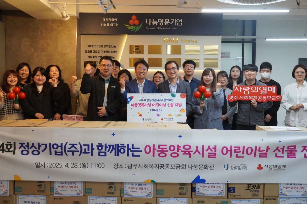 광주사회복지공동모금회는 정상기업㈜이 어린이날을 맞아 지역 아동들에게 사랑을 전하는 선물 나눔 행사를 진행했다고 28일 밝혔다.