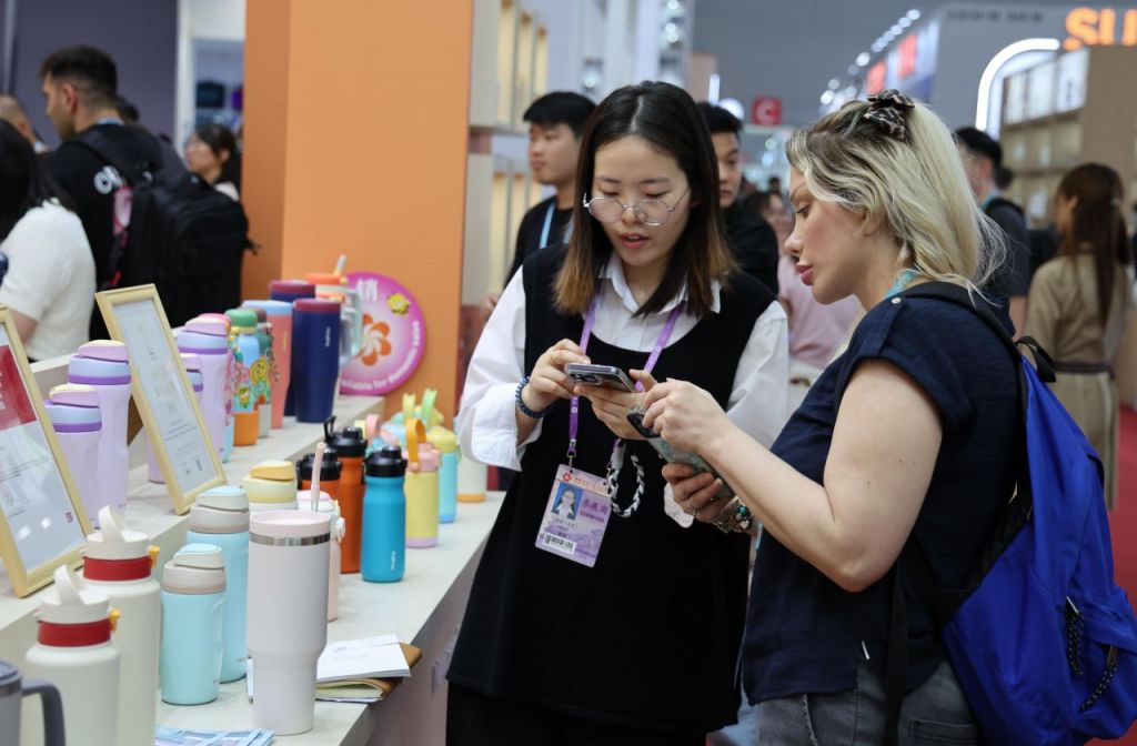 지난 23일(현지시간) 중국 광저우에서 열린 제137회 중국수출입상품교역회(캔톤 페어·Canton Fair)에서 한 방문객이 상품을 고르고 있다. 신화연합뉴스