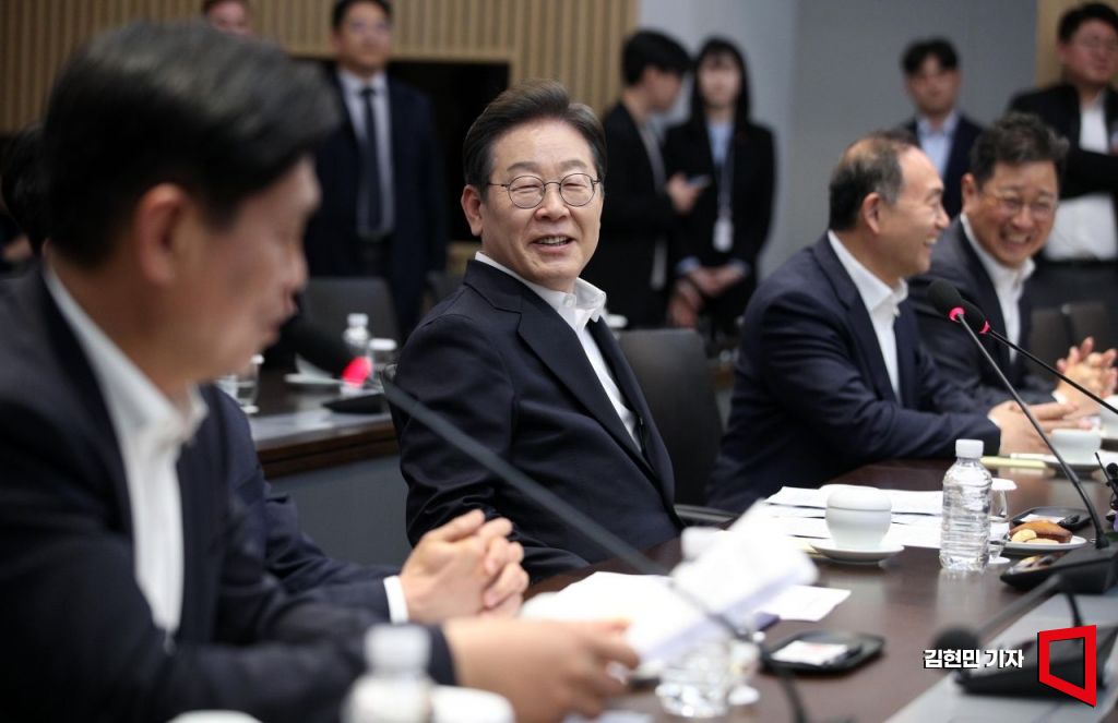 이재명 더불어민주당 대선 후보가 28일 경기 이천시 SK하이닉스에서 열린 ‘K-반도체’ AI메모리반도체 기업 간담회에서 발언하고 있다.