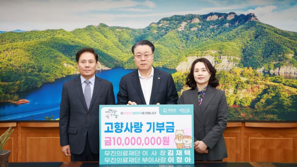 화순군(군수 구복규)은 지난 25일 무진 의료재단 김재택 이사장과 배우자 이정아 부이사장이 화순군에 각 500만 원씩 총 1,000만 원의 고향사랑기부금을 기부해, 3년 연속 고액 기부를 이어갔다고 28일 밝혔다.