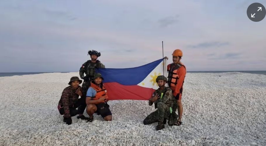 지난달 27일 필리핀 해안경비대가 남중국해 분쟁지역인 샌디케이 섬 모래톱에 국기게양을 한 모습. 필리핀 해안경비대 X(옛 트위터)계정