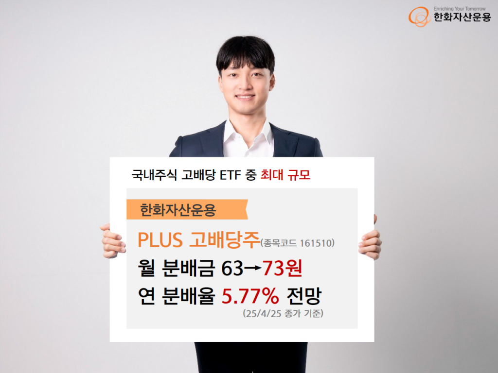 한화자산운용은 'PLUS 고배당주' 상장지수펀드(ETF)의 주당 월 분배금을 5월부터 기존 63원에서 73원으로 상향한다고 29일 밝혔다.