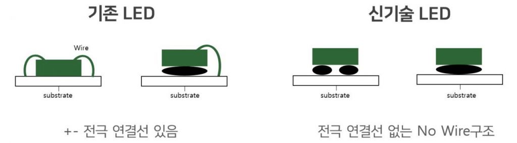 기존 LED와 서울반도체의 신기술 LED의 구성 비교도. 사진=서울반도체 제공